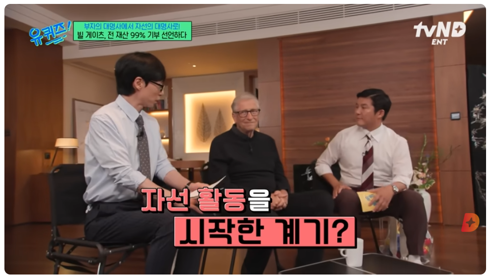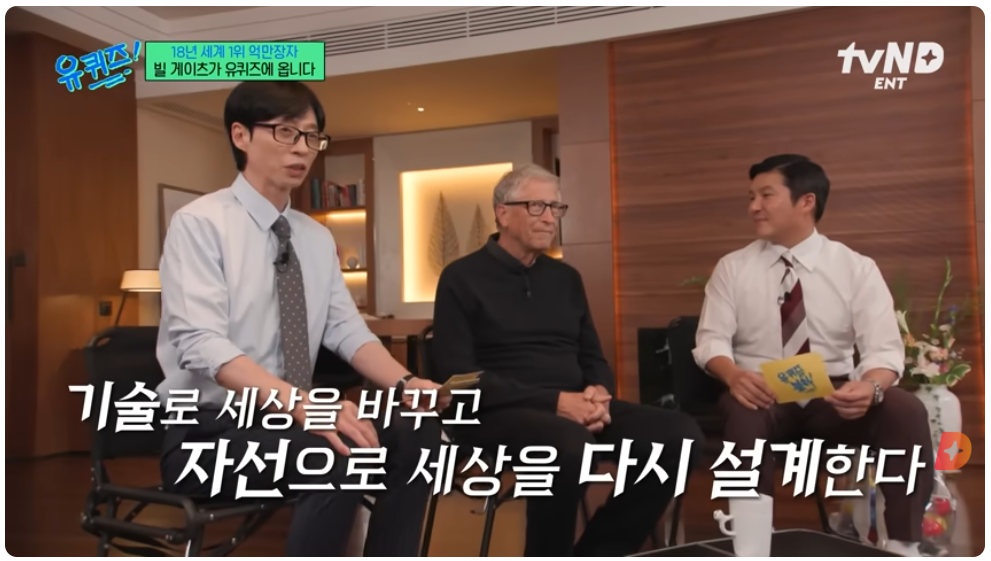빌 게이츠의 예능 출연은 본격적인 일정의 일부로, 게이츠 재단의 철학과 ‘유 퀴즈’ 포맷의 정체성이 맞닿아 성사된 자리였습니다. 프로그램 구성진 측은 “인간 존엄과 서로에 대한 이해를 전한다”는 유 퀴즈의 메시지와 게이츠 재단의 신념이 일치한다는 점에서 출연을 결정했다 밝혔습니다.